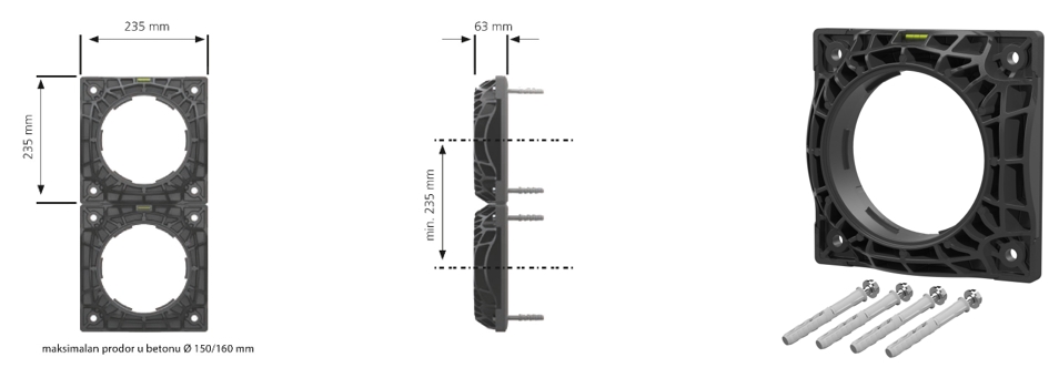 - Gumena brtva ispod prirubnice osigurava vodotijesnost između betona i zida